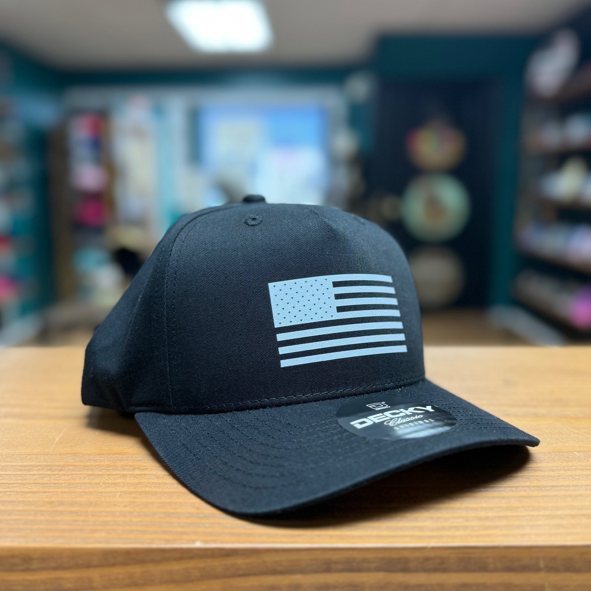 Rock your patriotic pride with this classic black 5-panel snapback from Decky. Featuring a white American Flag decal across the front and a comfortable fabric back, it's the perfect blend of style and comfort. Whether you're heading out for a casual day or showing your stars-and-stripes spirit, this hat delivers timeless appeal with a modern edge. Adjustable snapback closure ensures the perfect fit every time.