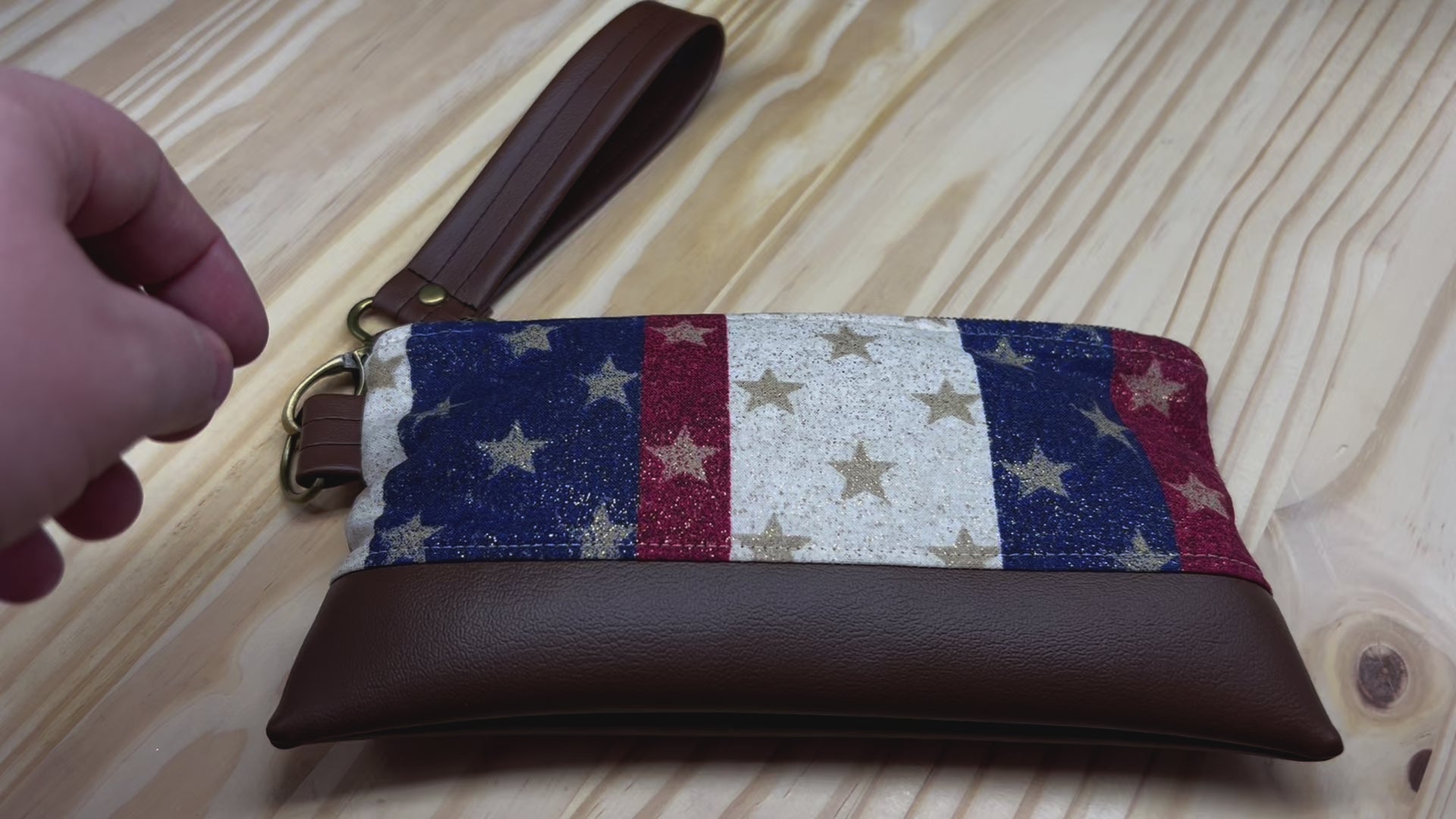 - Handmade with Cotton, Faux Leather and interfacing. Pattern placement may vary from photo.