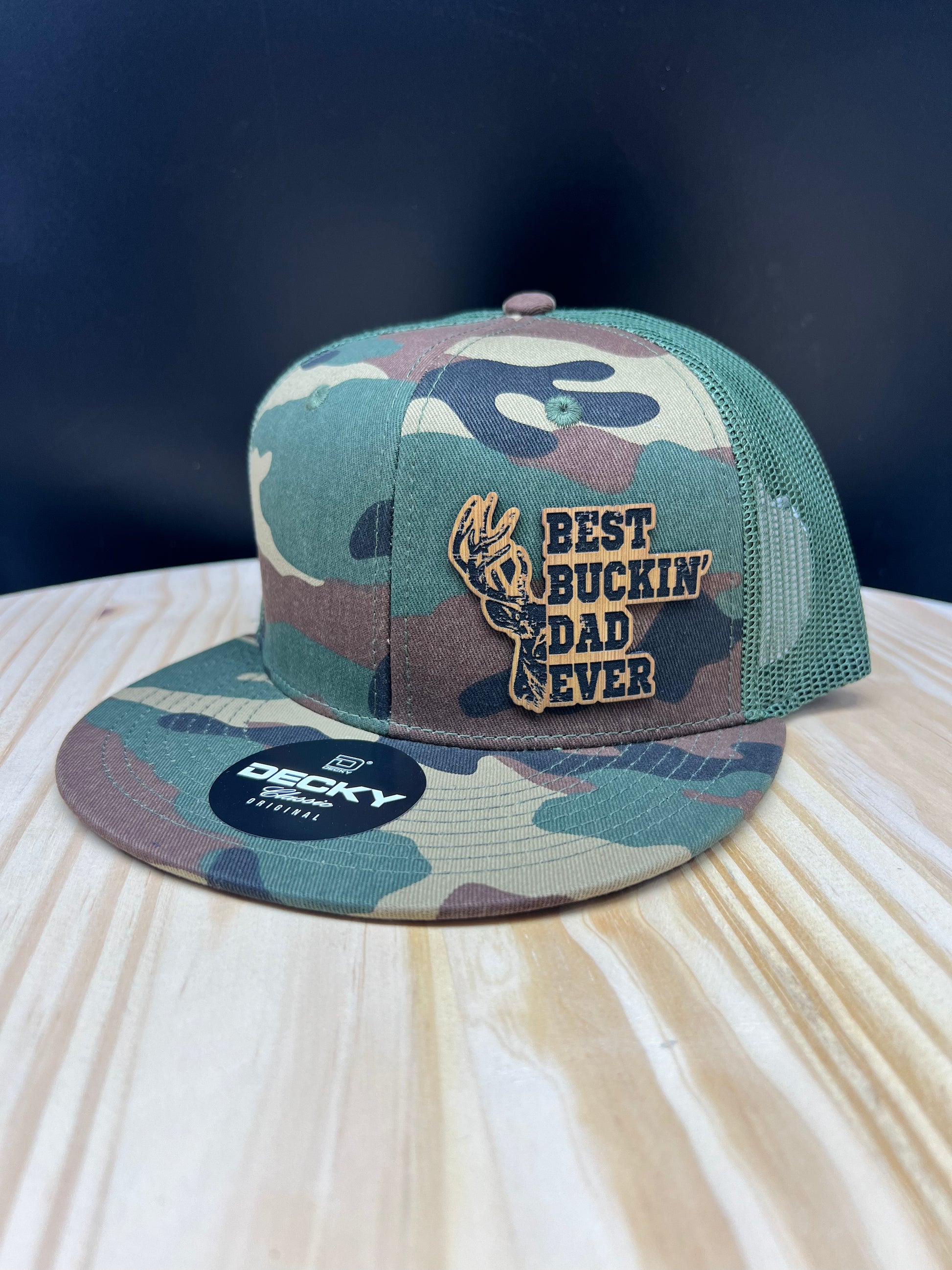 Camo/Olive Hat Featuring: A Rawhide Brown leatherette patch saying, “Best Buckin' Dad Ever.”