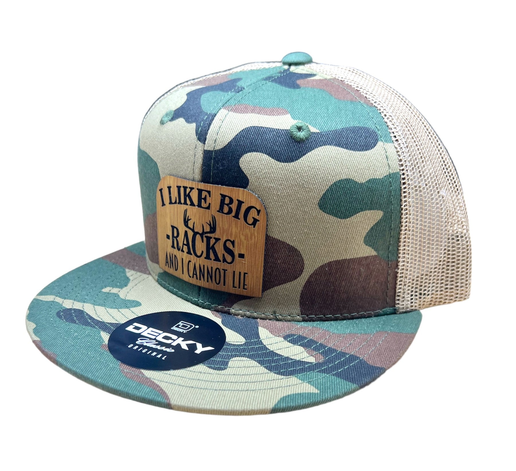Camo/Khaki Hat Featuring: A Bamboo style leatherette patch saying, “I like big racks and I cannot lie.”