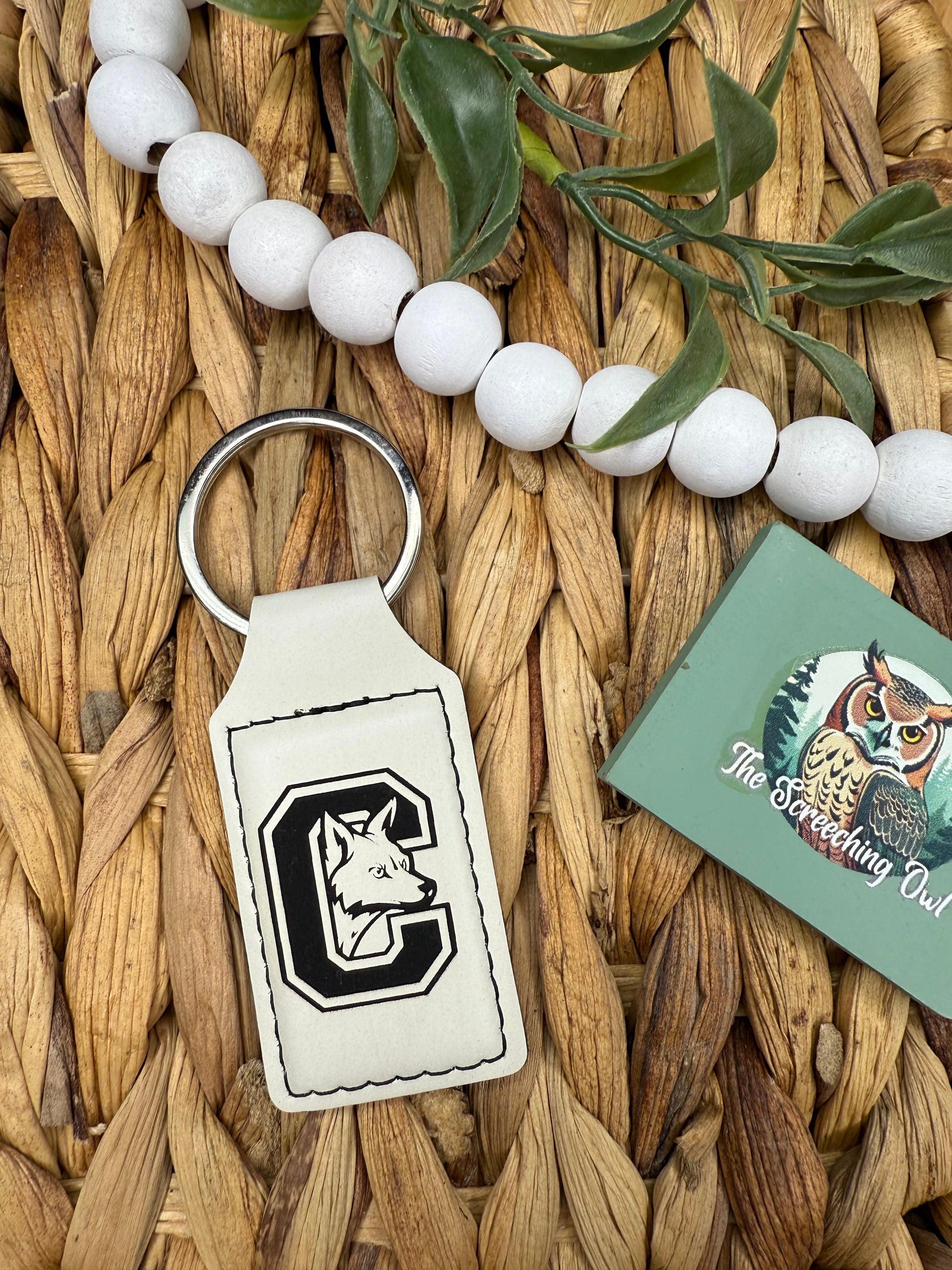 Represent your school with pride using our Candor Coyotes Leather Keychain. This leatherette keychain is a subtle way to show support for their alma mater. Perfect for keys, backpacks or sports bags, it's a great way to display school spirit in a functional and stylish way.