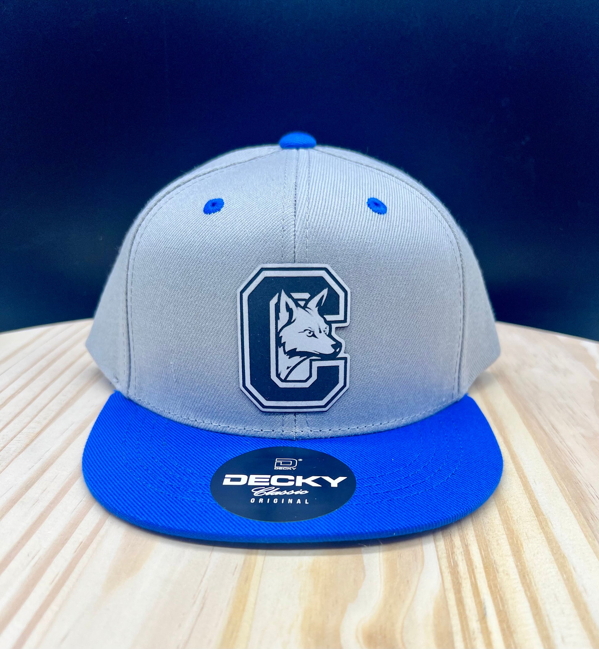 Gray/Royal Blue Hat Featuring: A white leatherette Candor Coyotes patch.