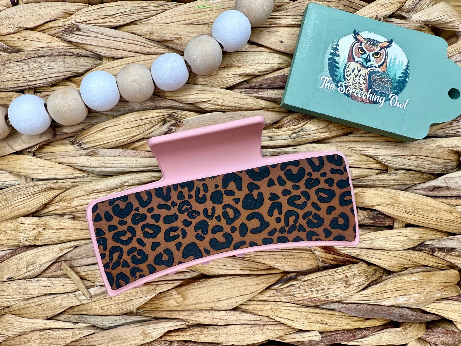 This claw clip features a laser engraved leatherette design, making it the perfect accessory for any hair type. Its sturdy claw design securely holds hair in place.