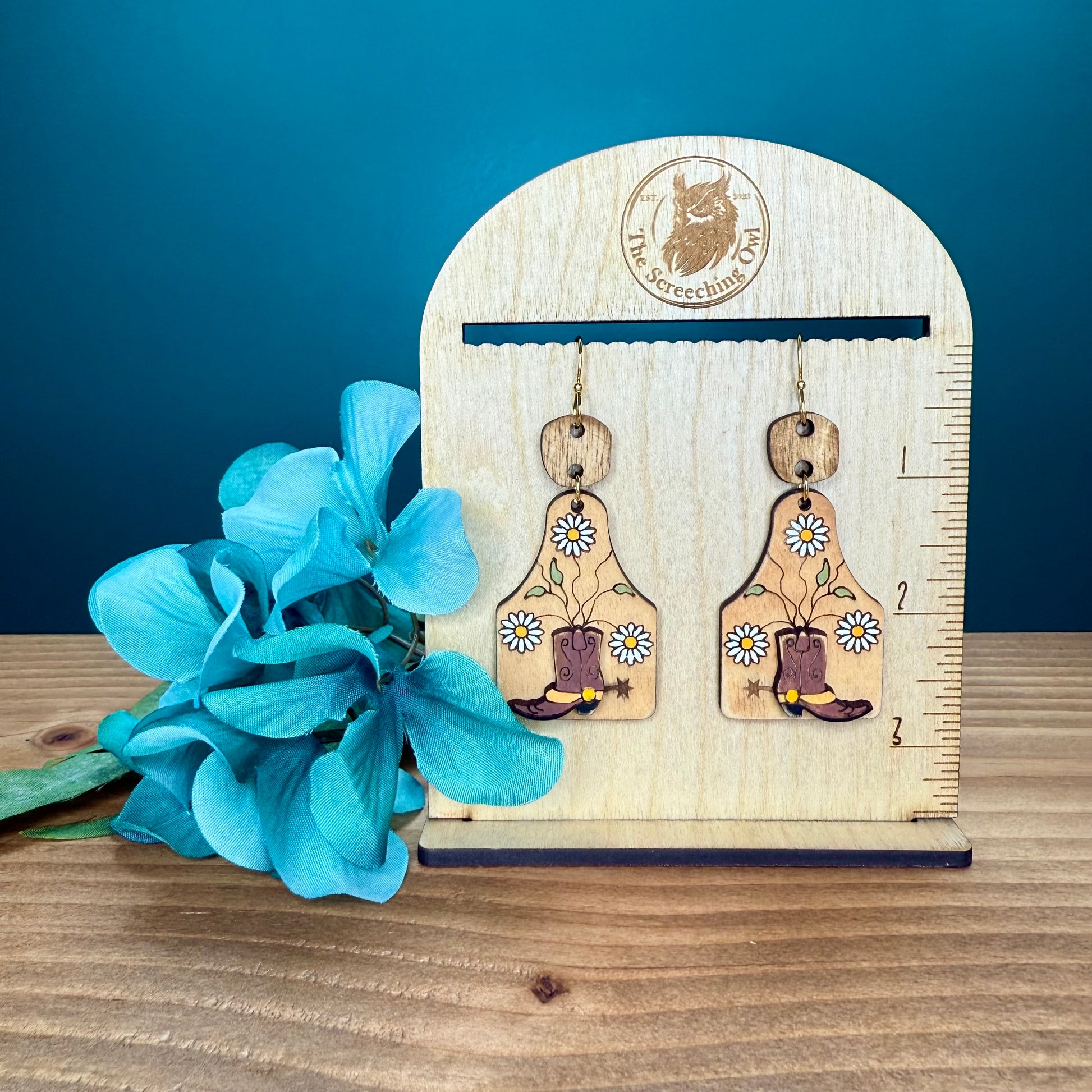 These Cowboy Boot Earrings feature hand painted and 3d layered designs, with durable stainless steel hardware for long-lasting wear. Express your love for western fashion with these unique earrings.