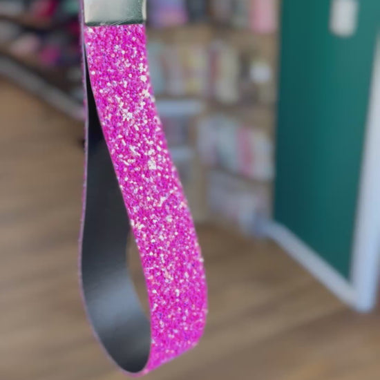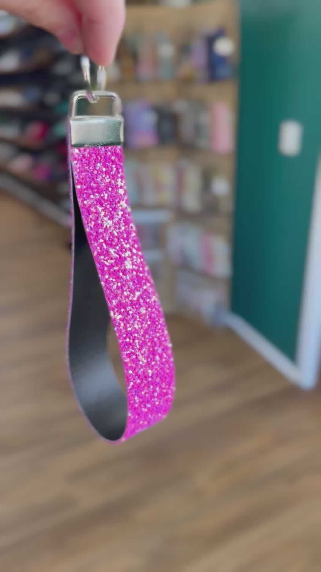 Glitter key fob/keychain. Made of faux leather with HTV backing.