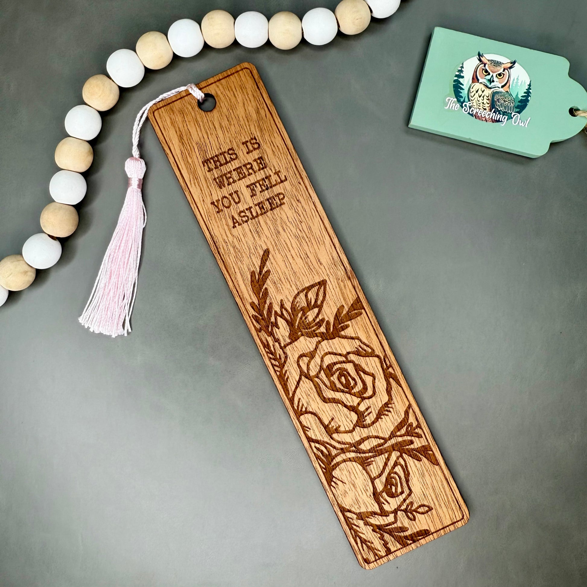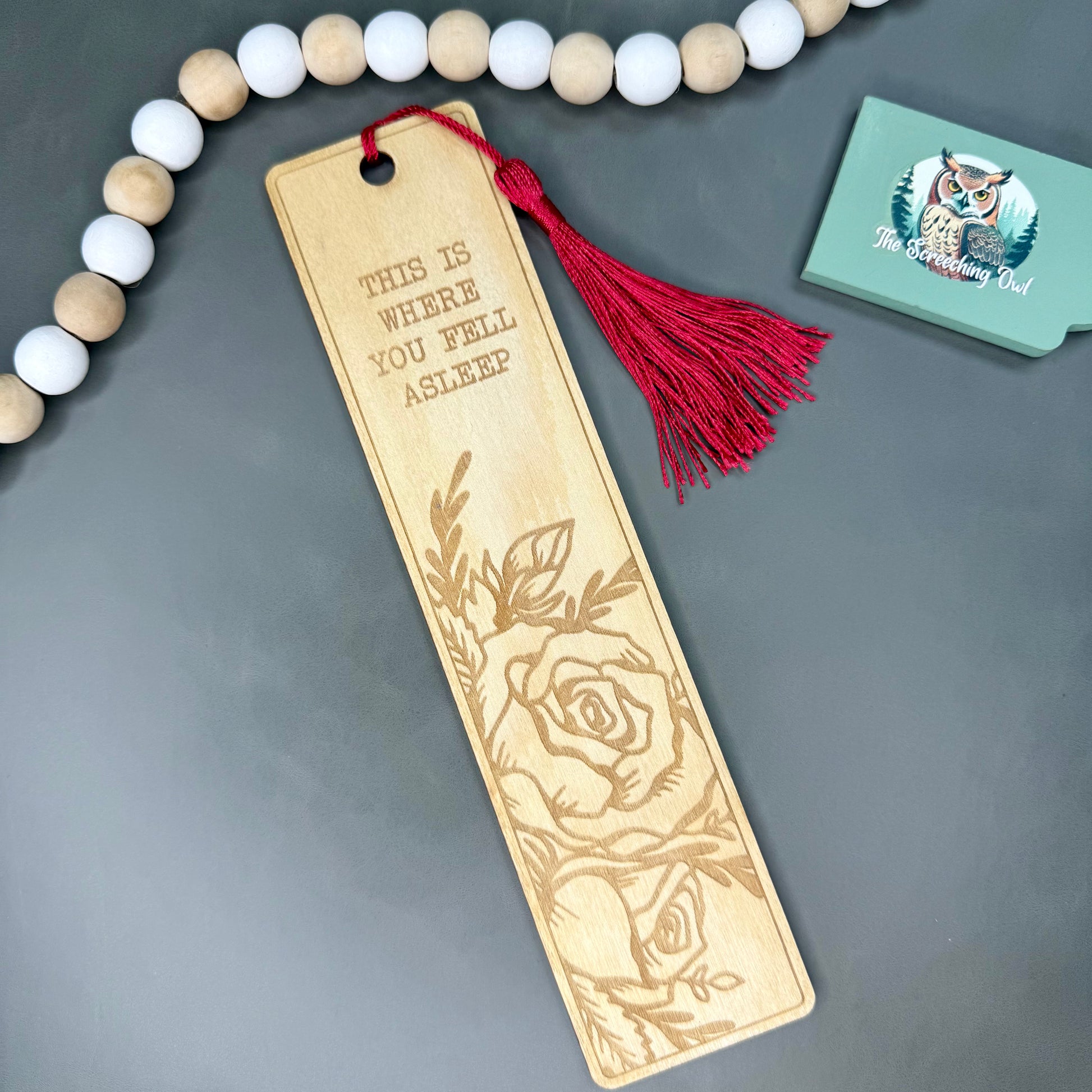 Keep your place and remind yourself of a peaceful slumber with our "This is Where You Fell Asleep" wooden bookmark. The perfect accessory for any book lover, this bookmark is both functional and charming, making it a unique gift for yourself or someone special.
