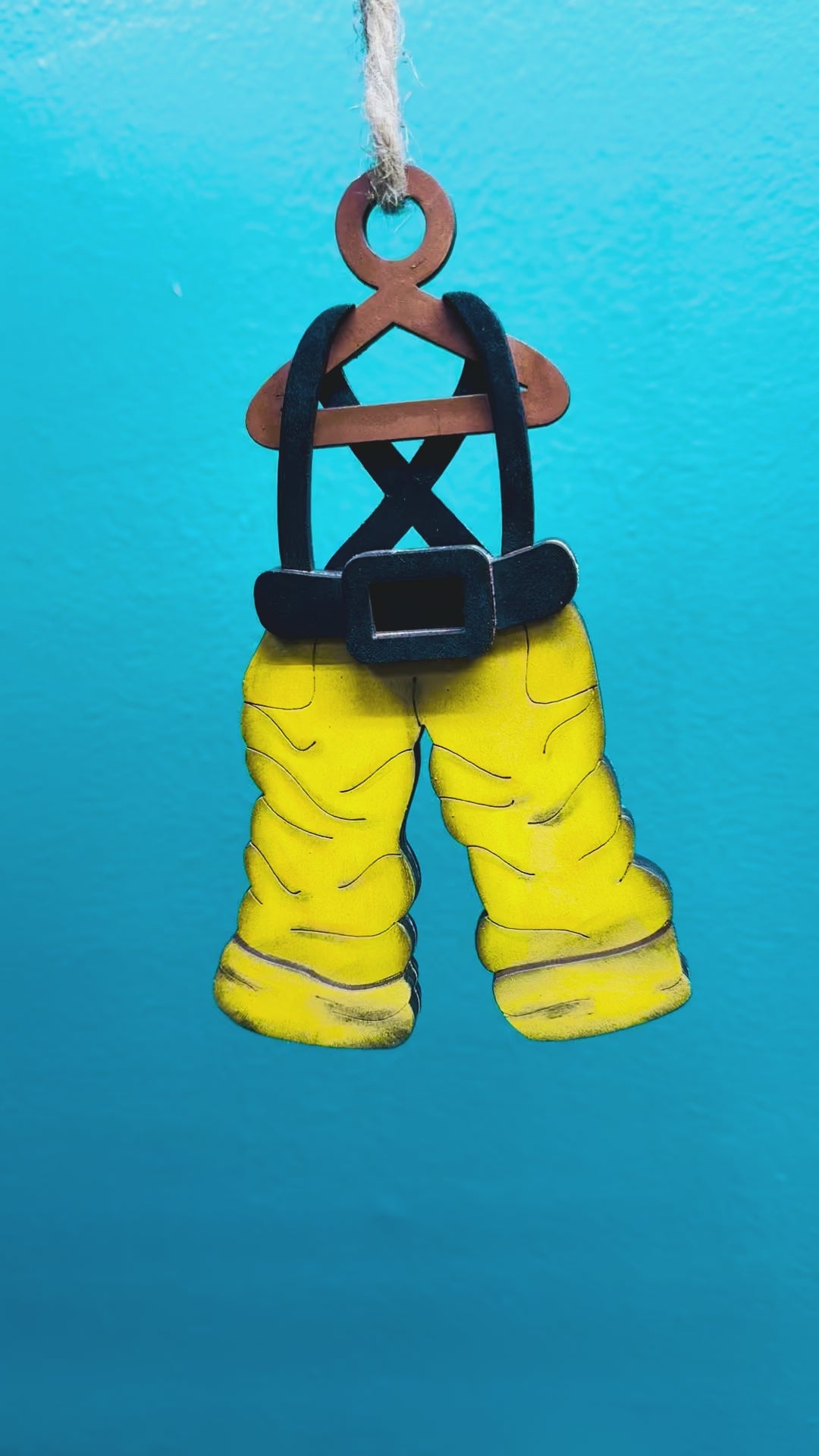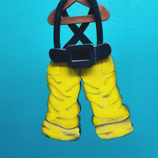 "Add a touch of heroism to your holiday decor with our hand painted wood Firefighter Pants Ornament. Show your appreciation for firefighters while adding a unique and meaningful piece to your tree. With intricate detailing and quality craftsmanship, this ornament is sure to be a cherished addition to your collection."