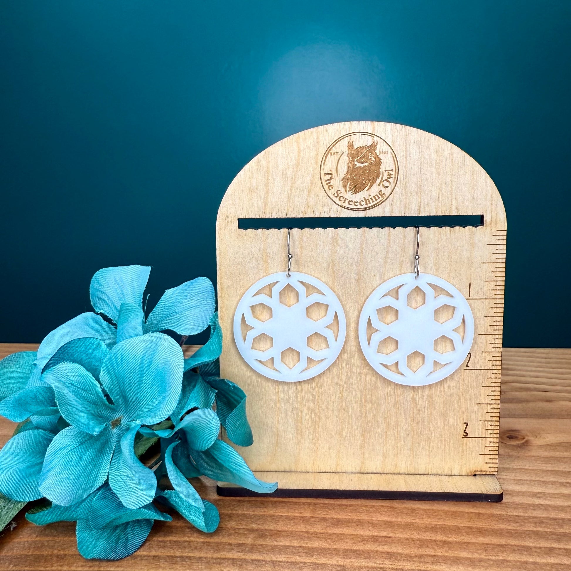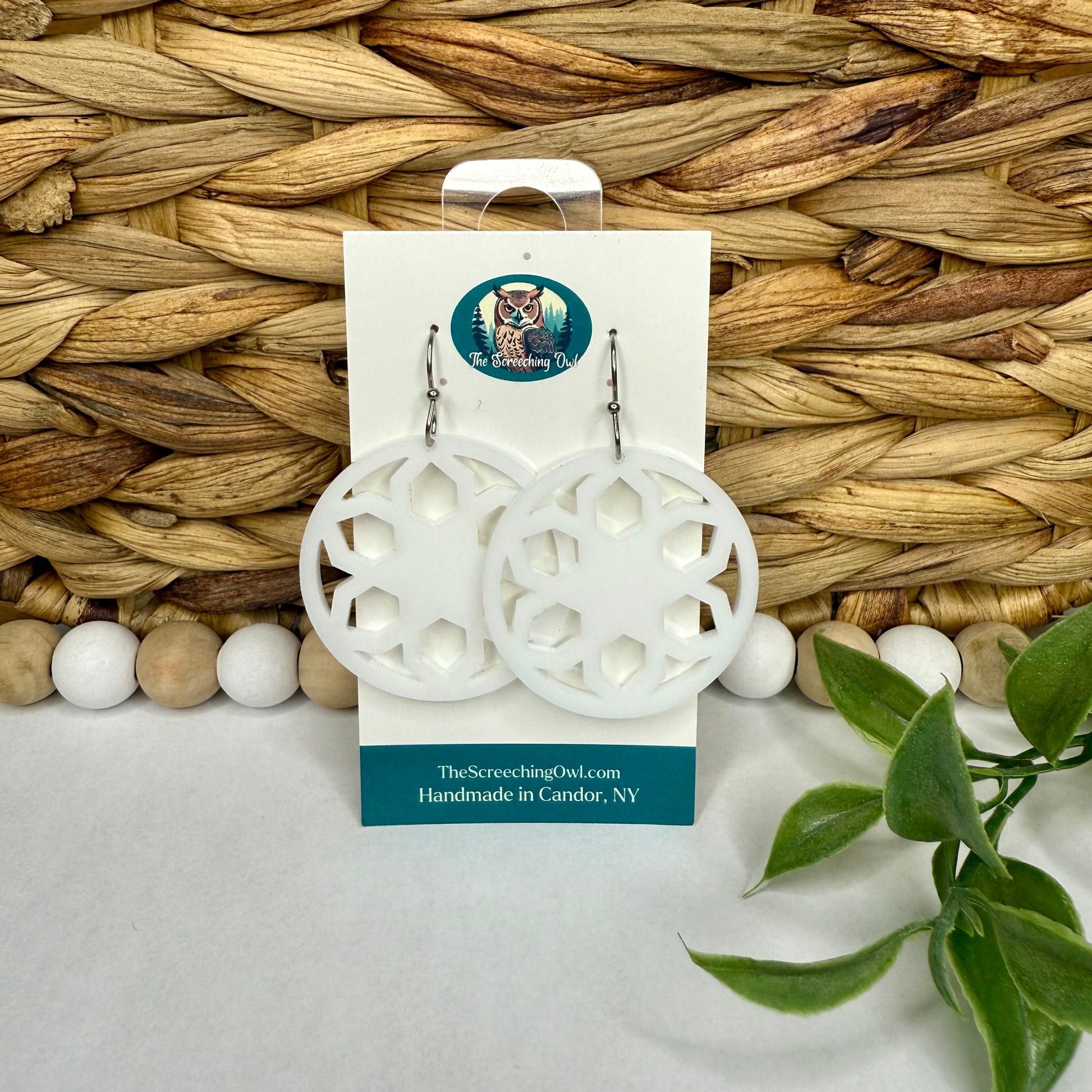 Flower Burst Acrylic Earrings are made with white acrylic and silver colored stainless steel wires.