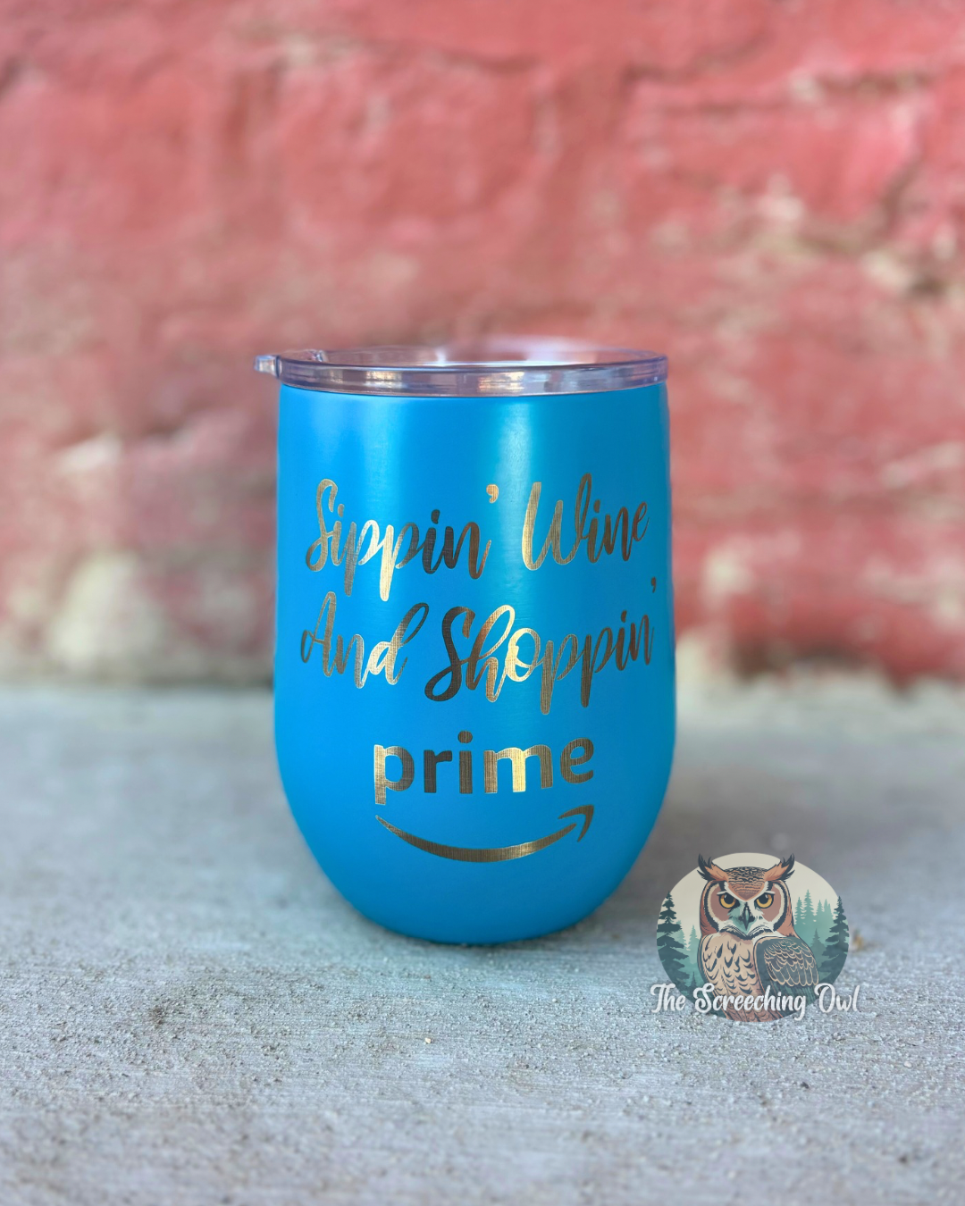 Elevate your wine moments with this playful "Sippin' Wine & Shoppin'" wine tumbler, featuring a charming laser-engraved design. Perfect for enjoying your favorite glass on the go or while browsing your latest finds, this tumbler keeps drinks at the ideal temperature with style and personality. Whether at home or out and about, it’s the perfect companion for those who love to sip and shop in equal measure.