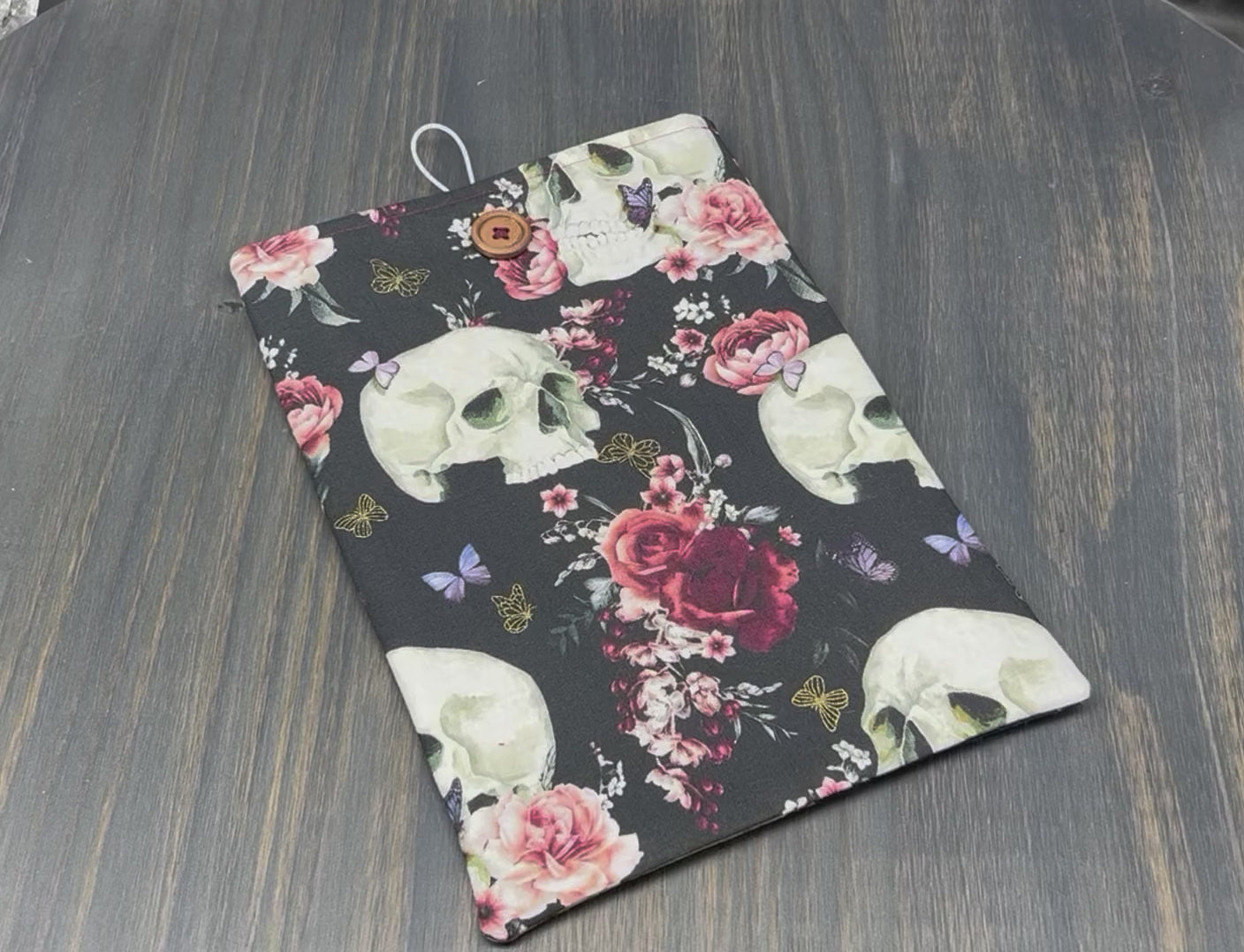 Introducing the Floral Skulls Book/Kindle Sleeve. Keep your small paperback books or e-reader safe and protected with 100% cotton material. Featuring a button and loop closure, this sleeve is both functional and stylish. No more damaged books on-the-go.